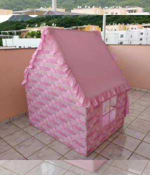 Casinha para brincar (Casinha de Boneca) feita em tecido e estrutura em PVC. Com as seguintes medidas: 150cm de frente (largura), 100cm de lateral (profundidade) e 160cm de altura, a Casinha é espaçosa, ideal para 3 crianças brincarem juntas. Estrutura desmontável. Tecido lavável.